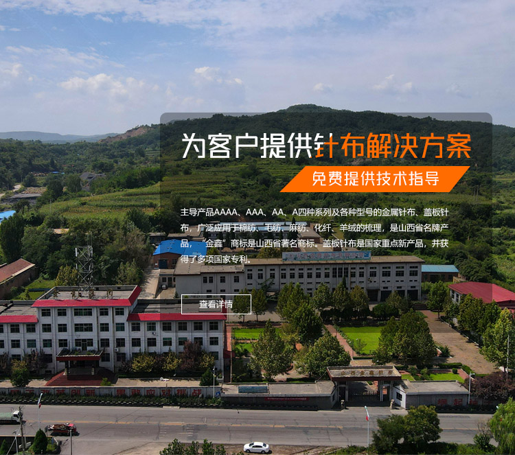 山西金鑫针布有限公司是山西省高新技术企业,“环境友好型企业”,环境行为评价“绿色企业”,是中国纺织机械协会理事单位。“金鑫”商标是山西省著名商标。盖板针布是国家重点新产品,并获得了多项国家专利。